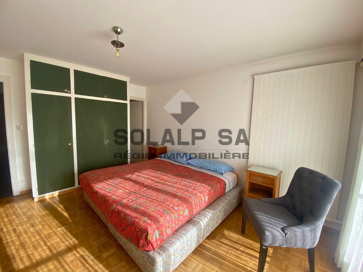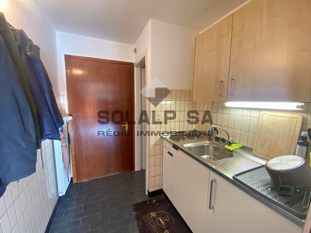 Petit studio meublé, avec un large balcon orienté sud, proche de la nature et desservi par les transports publics.